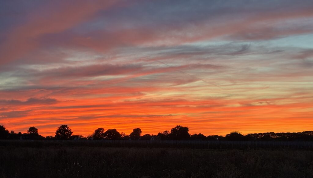 Tegenwoordig doen we na het eten wel eens een ommetje. Vanavond was de zonsondergang heel kleurrijk.