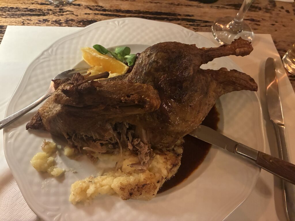 Voor het diner op maandag had ik gezelschap van Chris HA5XA. Voor mij was het eend met puree en rode kool. Ik had Chris voor het laatst ontmoet in 2018 en we hadden genoeg om over te praten.